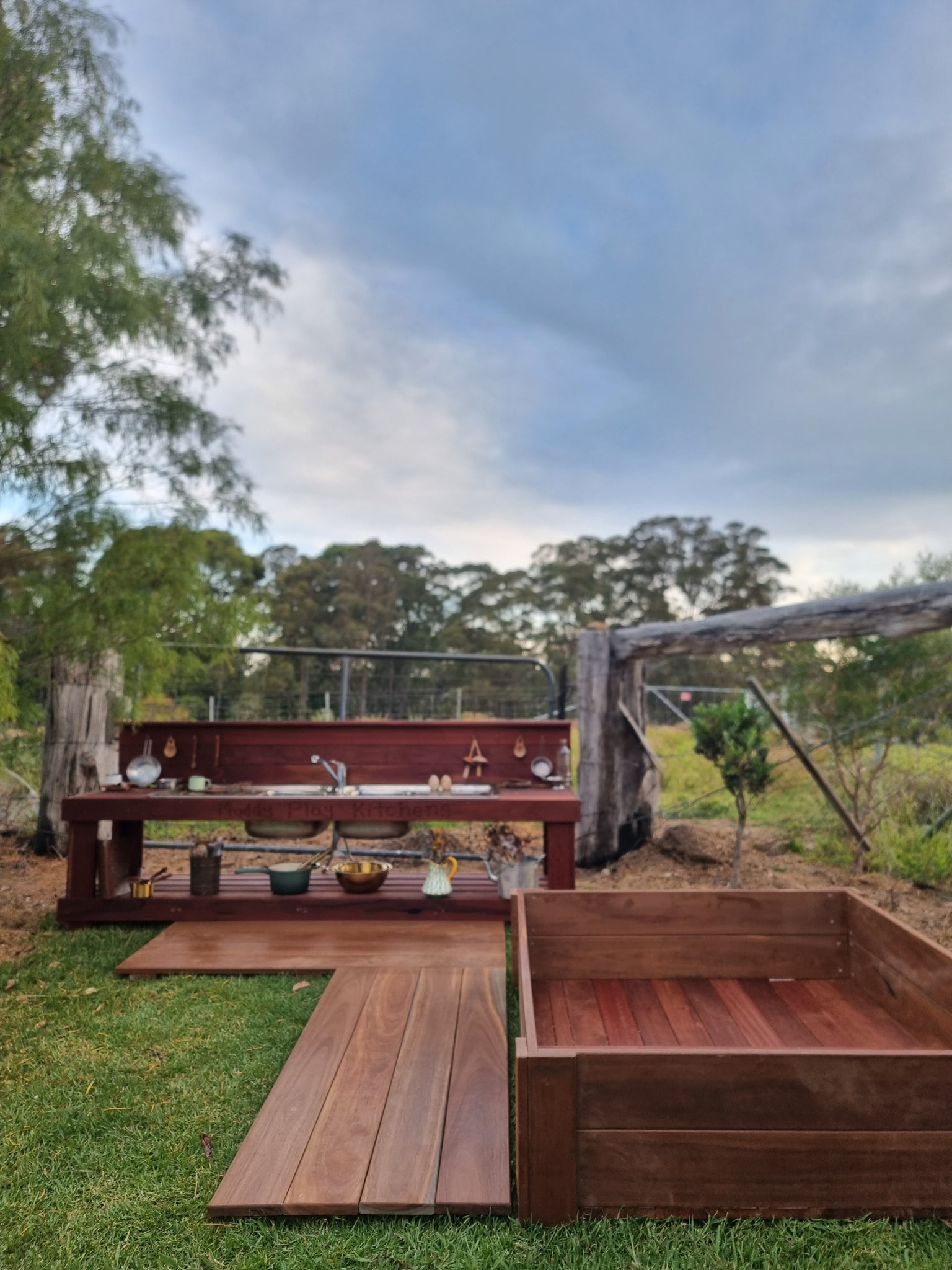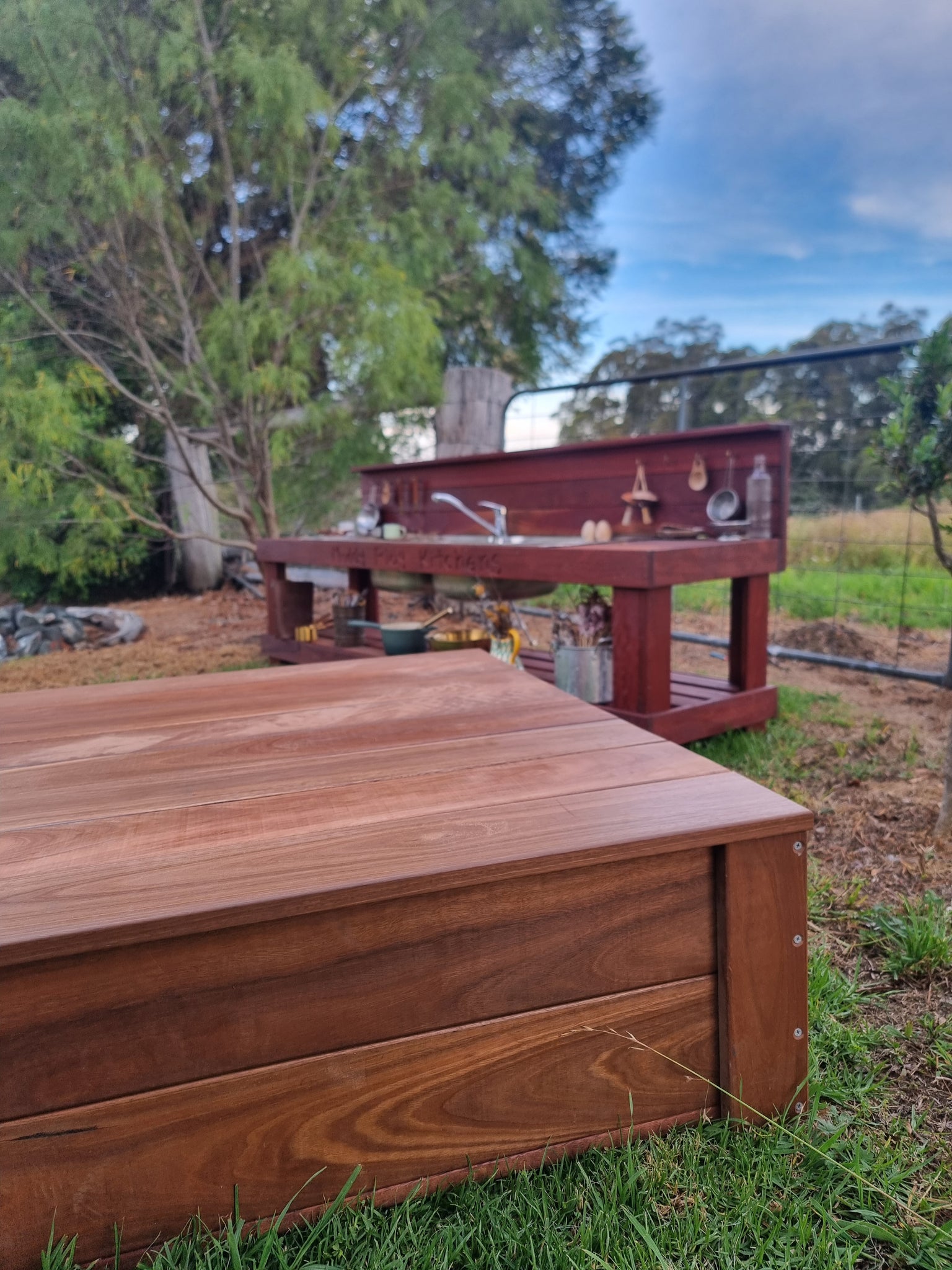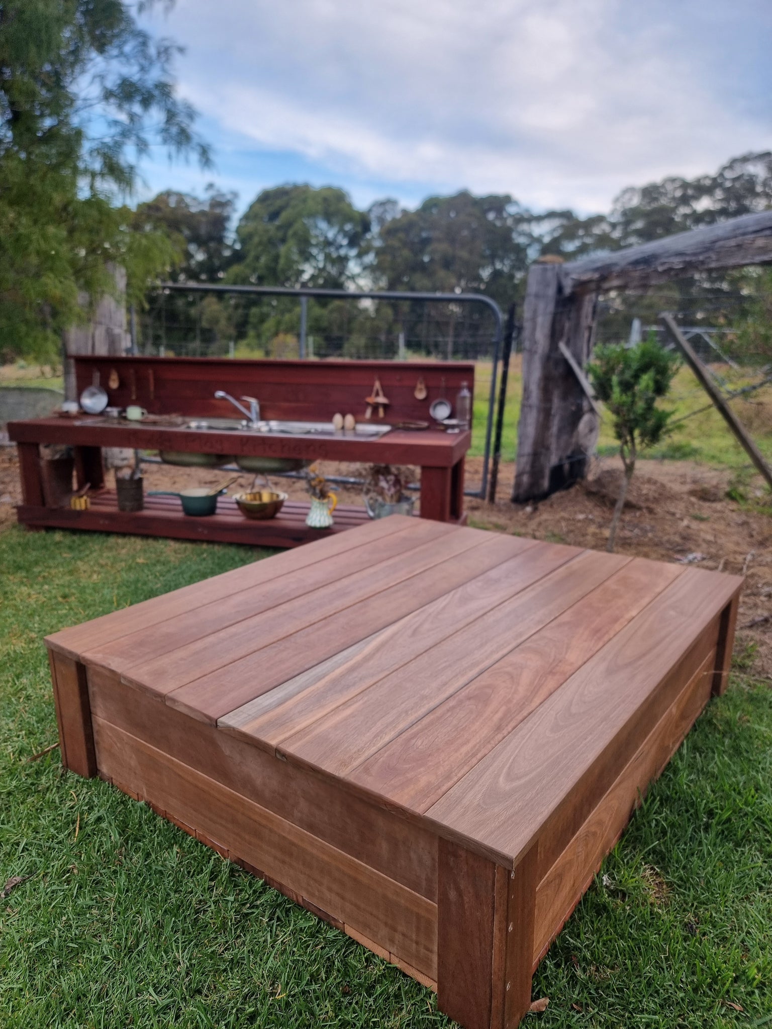 Our sandpit is made with locally sourced hardwood timber & fittings designed for outdoor use.