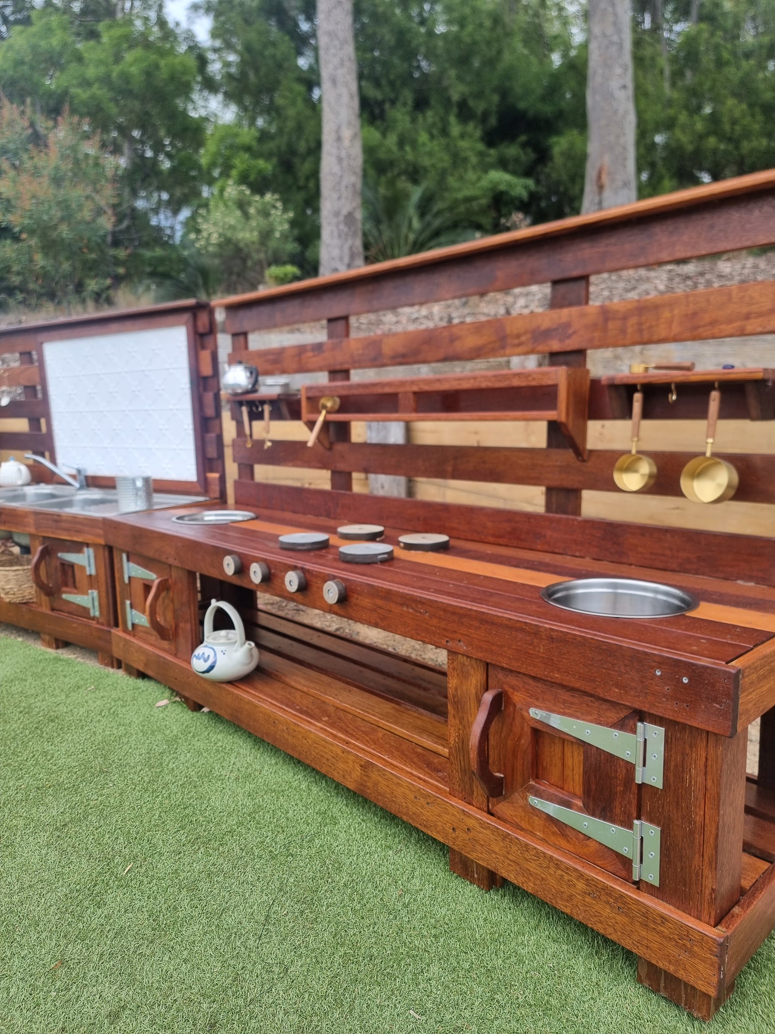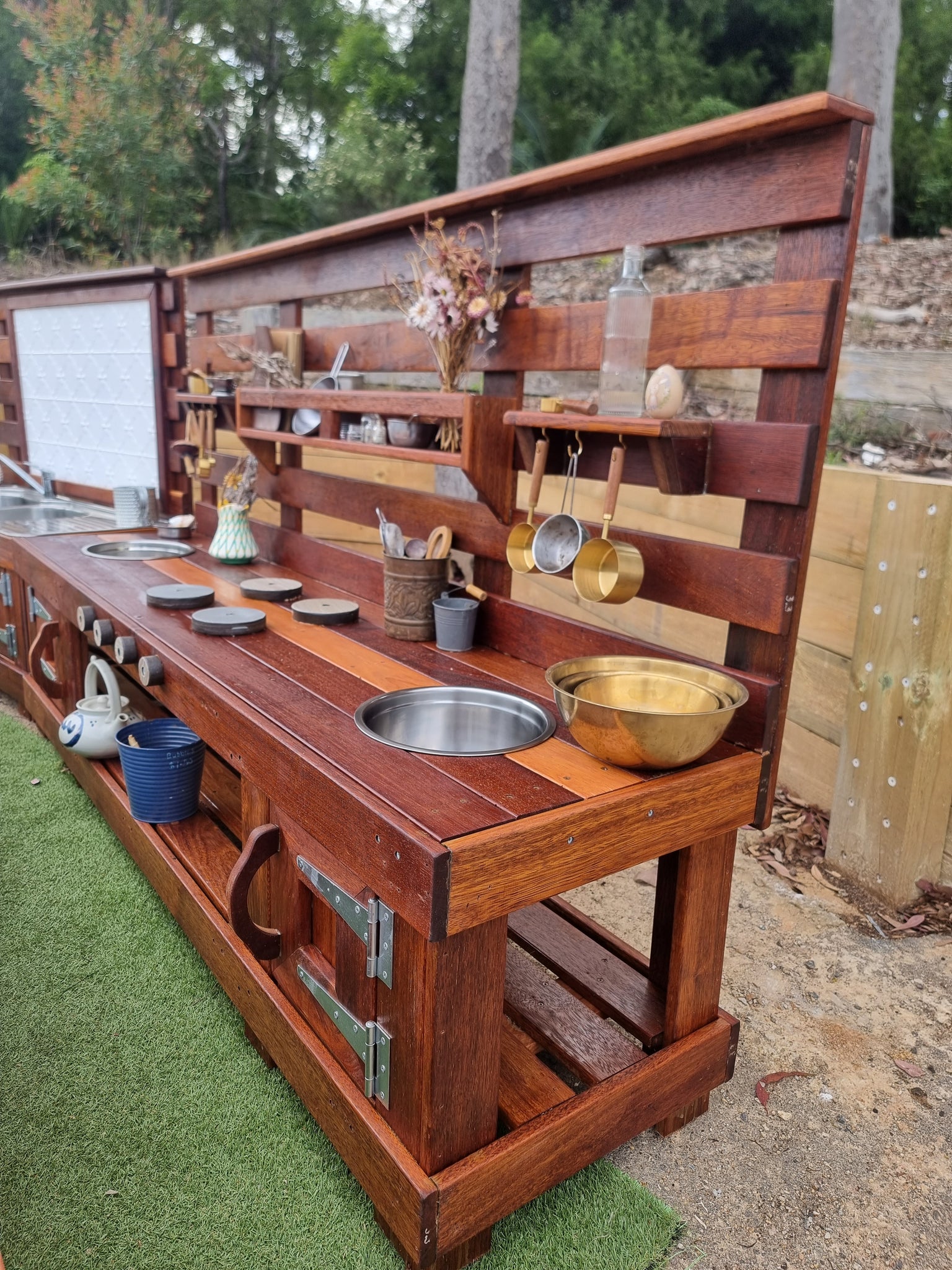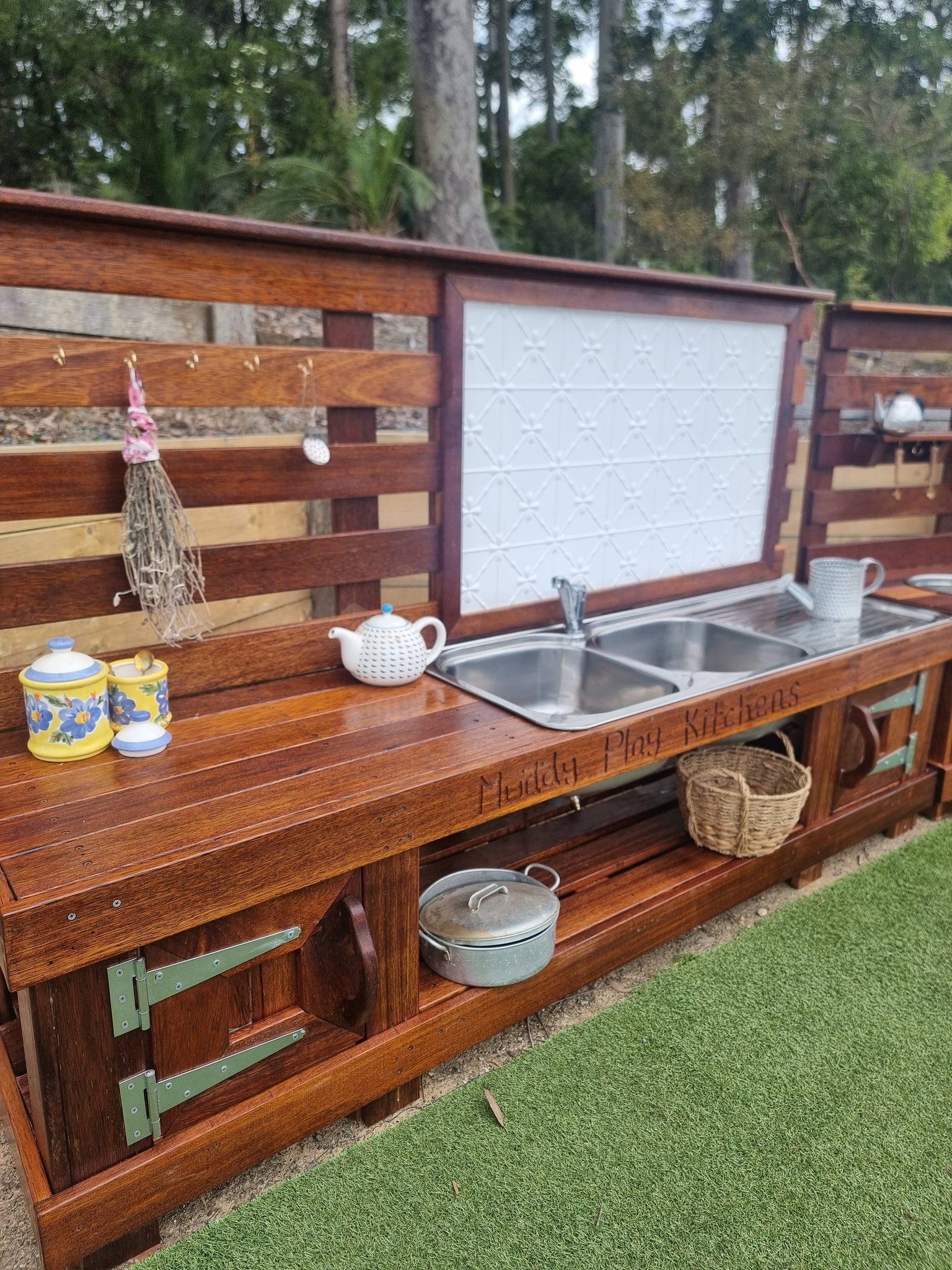 **All our mud kitchens have unique bench, sink & tap combinations. All sink & taps are sourced with sustainability in mind, taps & sinks are not brand new. Muddy Play Kitchens source items & repurpose for play**