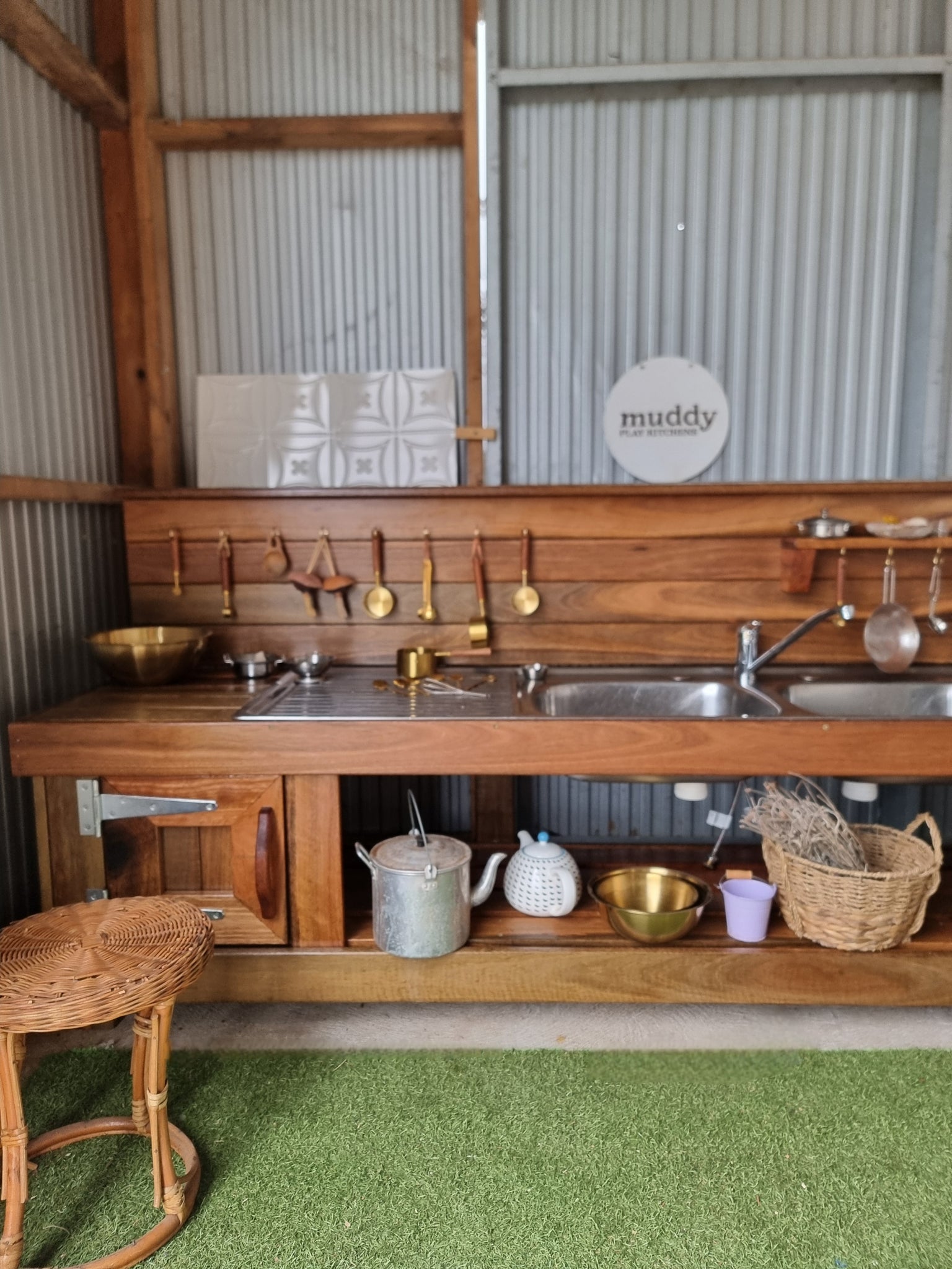 **All our mud kitchens have unique bench, sink & tap combinations. All sink & taps are sourced with sustainability in mind, taps & sinks are not brand new. Muddy Play Kitchens source items & repurpose for play**
